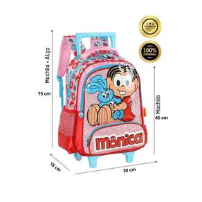Kit escolar turma da monica mochila de rodinha + estojo triplo mochila de rodinha: Confeccionada em poliéster Fechamento em zíper Puxadores personalizados Compartimentos espaçosos 2 bolsos laterais para garrafa Possui rodas e alças de costas reguláveis e alça de mão Design exclusivo Medidas aproximadas: Altura: 45 cm Largura: 15 cm Comprimento: 30 cm