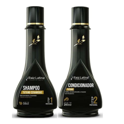 Kit tutano shampoo sem sal + condicionador hidratante raiz latina 250ml cabelos danificados profissional Shampoo tutano ceramidas raiz latina 250 ml