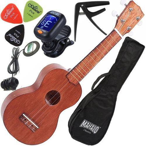 Kit ukulele eletroacústico mahalo soprano aquila rainbow nt ..::: ultimas peças com preço promocional ::::..O ukulele mahalo soprano série kahiko, tem timbre encantador com boa equalização de médios graves e agudos e matérias-primas selecionadas, sendo a escolha ideal para músicos de todos os estilos musicais. Oferece excelente tocabilidade para tocarem em qualquer ocasião.Um dos pontos fortes do mahalo soprano série kahiko é seu timbre. Os agudos trazem um brilho encantador, sempre com clareza e alta definição. Os graves destacam-se por serem presentes e encorpados. Estas características sonoras são potencializadas pelas madeiras selecionadas, como mogno e sengon e as cordas aquila nylgut.Adquira o ukulele mahalo soprano série kahiko e tenha um instrumento musical lindo, confortável e de sonoridade encantadoracaracterísticas:- tipo: soprano- modelo : eletroacústico- captador : piezo embutido no corpo do instrumento - dimensões aproximadas: 53x17x6 cm- peso aproximado: 330g- braço: sengo- corpo: sengon- ponte: mogno- tarracha: dolphin - cor: preto- cordas: aquila- trastes: bronze- número de trastes: 12- cavalete: nubone- acessórios: capa- marca: mahaloitens inclusos :- ukulele soprano mt1 nt mahalo- capa ultra resistente mahalo- palhetas- afinador cromático- capotraste- certificado