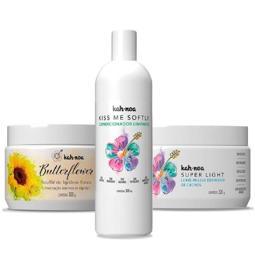 Kit Umectação Kah Noa Para Cabelos Cacheados (3 Itens) Kit Umectação para Cabelos Cacheados (3 Itens) Condicionador Limpante Kah-Noa Kiss Me Softly 300ml Indicado para (NO/LOW POO) condicionador feito de agentes naturais limpantes e hidratantes. Ideal para a rotina no poo, ou seja, para quem não usa silicones no cabelo. - Livre de sulfatos- Livre de parabeno- Livre de silicones- Livre de petrolatos - Não contém ingredientes de origem animal- Não testado em animais
