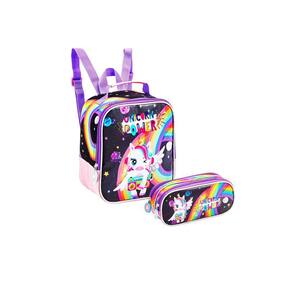 Lancheiratérmica UnicórnioProduzido em poliésterPossui alças de costasMaterial interno térmicoZiperes com puxadores personalizadosEstampa estilizadaNão acompanha potinho e garrafinhaDimensões: 22 x 20 x 8cm alt x larg x prof ;Estojo unicórnio02 compartimentoDimensões: 15 x 21 x6 cm