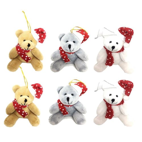 Leve o que há de melhor para sua casa e tenha uma decoração de natal incrível! Itens inclusos: -02 unidades Ursinho Pelúcia Natal Gorrinho e Cachecol 15cm Bege -02 unidades Ursinho Pelúcia Natal Gorrinho e Cachecol 15cm Branco -02 unidades Ursinho Pelúcia Natal Gorrinho e Cachecol 15cm Cinza