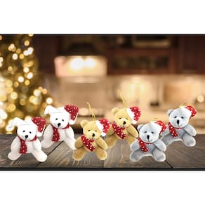O Natal é tempo de celebrar o amor, comemorar a vida com novas esperanças, novos sonhos e também é a hora de deixar a casa mais bonita para receber a família nesta data tão importante! Você poderá realizar um Natal com toque de charme e bom gosto que contagiará seus convidados com o espírito natalino, deixando a sua casa decorada de uma forma diferente e aprimorada para a data mais esperada do ano! Com o intuito de manter esta tradição, os enfeites não podem faltar e, muitos deles são especiais e com um significado além do que você imagina. Por isso trazemos até você este super Kit de ursinhos em pelúcia decorados de Natal, são ursos pendentes com 15cm de altura com gorro e cachecol em 3 cores diferentes! Bege, Branco e Cinza. Os ursinhos em pelúcia são super charmosos, ideais para decorar a árvore de natal, festões ou guirlandas!