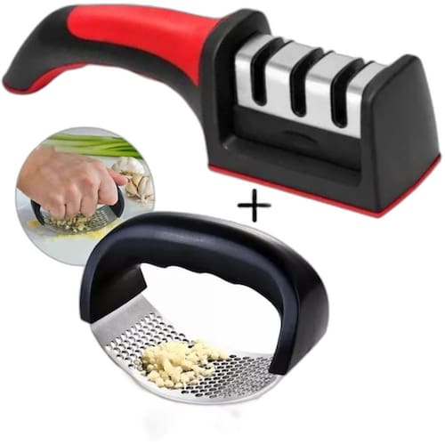 Descrição do anúncio: O kit espremedor de alho é um utensílio resistente e funcional + amolador de facas desenvolvido para agilizar o preparo de receitas. Além de triturar alho, pode ser para pimentas, castanhas e gengibre. O amolador é ideal para facas e tesouras essencial para se ter na cozinha. Conteúdo da embalagem: 1 espremedor de alho 1 amolador de facas Características: Material: aço inox Design elegante e ergonômico Fácil de limpar Evita contato direto com o alho Especificações: Material: aço inoxidável e abs Tamanho: 10,5 cm x 7,2 cm Peso: 106g Capacidade de trituração: 1 dente de alho a cada 2 segundos Principais perguntas sobre o produto e respostas: 1 este espremedor pode ser para outros alimentos além do alho Sim, ele pode ser para triturar pimentas, alguns tipos de castanhas e gengibre. 2 é fácil de limpar Sim, o design permite uma limpeza fácil e rápida. 3 de que material é feito o espremedor Ele é feito de aço inoxidável e abs. 4 qual é a capacidade de trituração do espremedor Ele pode triturar 1 dente de alho a cada 2 segundos. 5 o espremedor evita o cheiro de alho nas mãos Sim, ao usar o espremedor, você evita o contato direto com o alho, eliminando o cheiro nas mãos. 6 este afiador pode ser para afiar lâminas serrilhadas Não, ele não é adequado para lâminas serrilhadas. 7 preciso de água ou óleo para usar o afiadorNão, o afiador não necessita de água nem óleo. 8 é fácil de usar Sim, é muito simples e eficiente de usar, com instruções claras para cada etapa de afiação. 9 ele é seguro para usar Sim, mas deve ser manuseado com cuidado e mantido fora do alcance de crianças. 10 o afiador é compacto R: sim, ele é compacto e fácil de armazenar, ideal para cozinhas com espaço limitado.