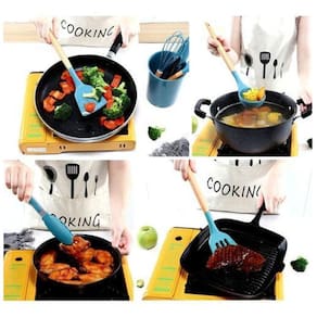 Kit Utensílios Cozinha 12 Peças Silicone Linha Premium Cor: Azul-turquesa Design, aderência, conforto, sustentabilidade e silicone térmico Linha premium Com material de alta qualidade, esse lindo kit utensílios foi projetado de forma altamente ergonômica em bamboo e silicone resistentes a altas temperaturas. Além de lindos e resistentes, são confortáveis e não transferem calor para suas mãos. De resistência excelente, silicone que suporta altas temperaturas (230C), diferente de produtos parecidos que derretem facilmente ou gradualmente. Um produto que vem com a qualidade que você com certeza vai querer ter na sua cozinha. Com 12 peças, capaz de atender a todas as suas necessidades na cozinha, são utensílios antibacterianos, livres de cola, atóxicos, antiaderentes, fáceis de limpar e armazenar. Os utensílios são totalmente livres de BPA. CARACTERÍSTICAS Design: Aderência, conforto e silicone térmico; Suavidade: Maciez, proteção para panelas antiaderentes; Durabilidade: Resistente a altas temperaturas, não deforma e não resseca; Segurança: Material atóxico, não cria bolor/fungos e possui silicone de alta qualidade que não deixa gosto ou odores nos utensílios; Conveniência: fácil de limpar, sem ruídos ao encostar em panelas e outros utensílios. ESPECIFICAÇÕES TÉCNICAS: Composição: Bamboo, Silicone Térmico de Alta Qualidade e Inox Cor Principal: Azul Turquesa Número de peças: 12 Temperatura Suportada: de -40C até 230C Peso Bruto: 1,20Kg Tamanho da Embalagem: 33 cm x 12,5 cm x 12,5 cm ITENS INCLUSOS: 1 Concha 1 Colher Rasa 1 Colher Redonda Funda 1 Colher Redonda Vazada 1 Espátula Grande 1 Espátula Lisa 1 Espátula Vazada 1 Pegador para Massa 1 Batedor Fuê 1 Pinça/Pegador em inox 1 Pincel 1 Balde Suporte Um único kit para todas as necessidades culinárias diferentes.Se você ama cozinhar, você vai adorar estes utensílios de alta qualidade
