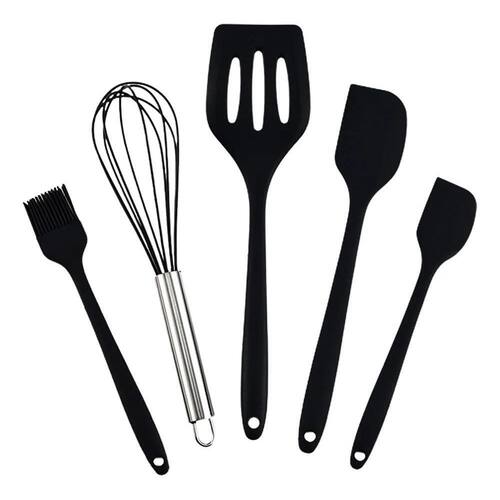 Variedade Incrível: Nosso kit inclui cinco utensílios essenciais: uma espátula grande, espátula pequena, espátula vazada, fuê e pincel. Tenha a ferramenta certa para cada tarefa na cozinha