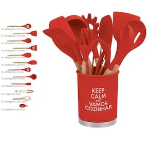 Kit Utensílios Cozinha Silicone Colher Copo Suporte 13 Peças