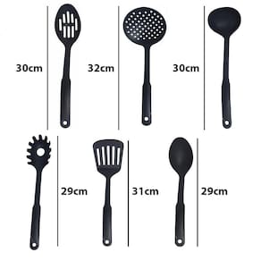 1x Escumadeira 1x Espátula 1x Concha 1x Pegador de Macarrão 1x Colher de Arroz 1x Pegador de Saladas e Carnes