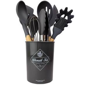 Kit utensílio com 11 peças + suporte de alta qualidade, produto premium.