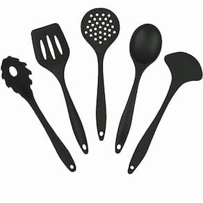 Dimensões: Aproximadamente 30CMConteúdo: Kit composto por 5 Peças - Escumadeira - Colher de Servir- Concha- Pegador de Massas - Espatula Vazada