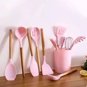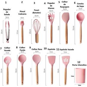 Cada utensílio é feito com silicone resistente ao calor e antiaderente, garantindo que suas panelas fiquem livres de arranhões e manchas. Os cabos de madeira não apenas adicionam um toque rústico e sofisticado, mas também são projetados para não transmitir calor, proporcionando um manuseio seguro e confortável. Simples de limpar, estes utensílios podem ser higienizados na máquina de lavar louça, economizando seu tempo e esforço. Resistência Térmica: O conjunto de utensílios suporta temperaturas de -30 a 230°C, tornando-o perfeito para uma variedade de tarefas de cozinha para o dia a dia, confeitaria entre outros preparos na cozinha. Segurança Alimentar Garantida: Jogo de utensílios em silicone e livres de BPA, assegurando a saúde de sua família.