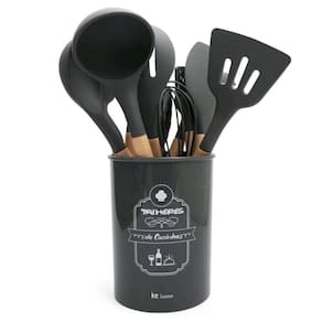 O kit contem: suporte batedor de ovos pincel concha espatula espatula vazada espatula redonda espatula pão duro colher colher vazada pegador de macarrão pegador