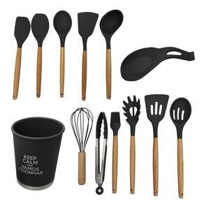 Kit utensílios de cozinha silicone 13pçs - preto
