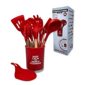 CONTÉM: Kit Utensílios de Cozinha Silicone 13pçs Vermelha