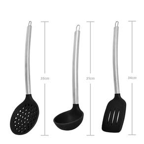 Jogo Utensílios Cozinha Silicone e Cabo de Metal 04 Peças cor Preto