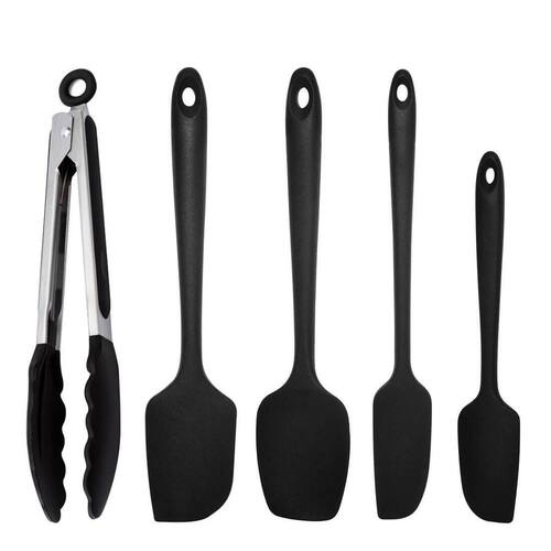Kit Utensílios De Cozinha Silicone Profissional Espátulas Cor: preto