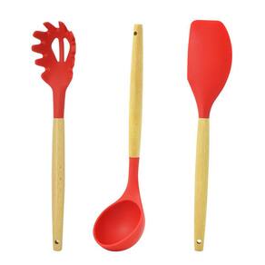 Kit Utensílios de Silicone Vermelho Cabo de Madeira 7 peças Sua cozinha linda, organizada e sem riscos nas suas panelas, desenvolvidos com madeira maciça e silicone de alta qualidade resistente ao calor.