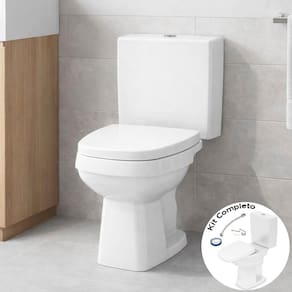 Produzido em louça sanitária resistente, o conjunto garante durabilidade, acabamento uniforme e fácil higienização, já que a superfície lisa do vaso evita acúmulo de resíduos.