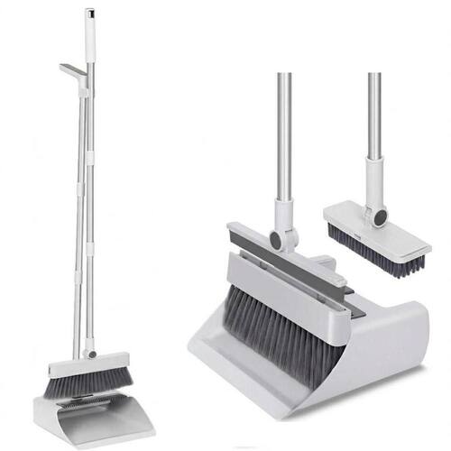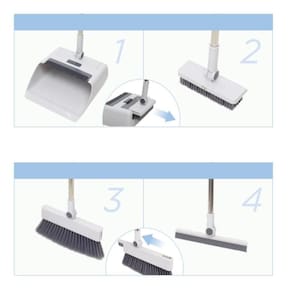 Vassoura com Pá Coletora Vertical 4 em 1 com Cabo Longo