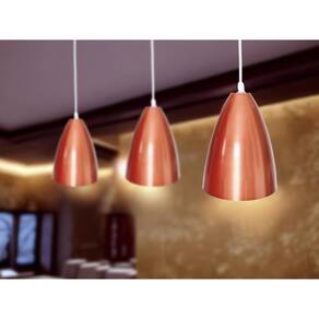 Kit vegas pendentes 3 peças pinturas eletrostática área interna e externa vem acompanhado de lapada Conteúdo da embalagem 03 luminárias vegas vermelho na parte interna e externa. 03 canoplas para fixação no teto 03 cabo de 1 metro ajustável com soquete 03 lâmpadas