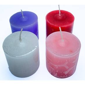r: o kit contém 4 velas do advento: 1 vela branca, 1 vela vermelha, 1 vela verde e 1 vela roxa. 2. Qual o material das velas?