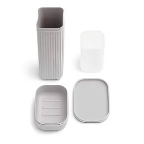 Feito em plástico rígido de alta durabilidade. Possui 2 peças (1 saboneteira + 1 estojo dental). Dimensões: Estojo dental: 21 cm x 5 cm x 6 cm Saboneteira: 4 cm x 11 cm x 7 cm.