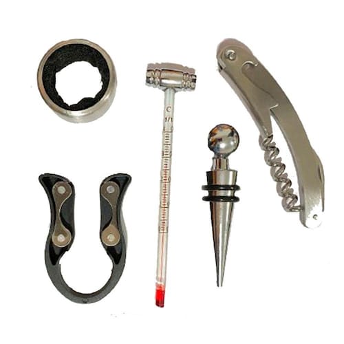 Kit Vinho Abridor Saca Rolhas Tampa Termômetro 5 Peças
