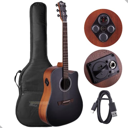 Especificações: -EQ: Tagima Ambience -captação: Piezo -dreadnought Cutaway: -tampo: Sapele -lateral/fundo: Sapele -braço: Okoume - Shape C -escala: Technical Wood - 20T - C 25.5 - R 14 -cavalete: Chhlik Wood -tarraxas: Diecast Pretas -efeitos: Chorus, Reverb e Delay -acabamento: Open Pore