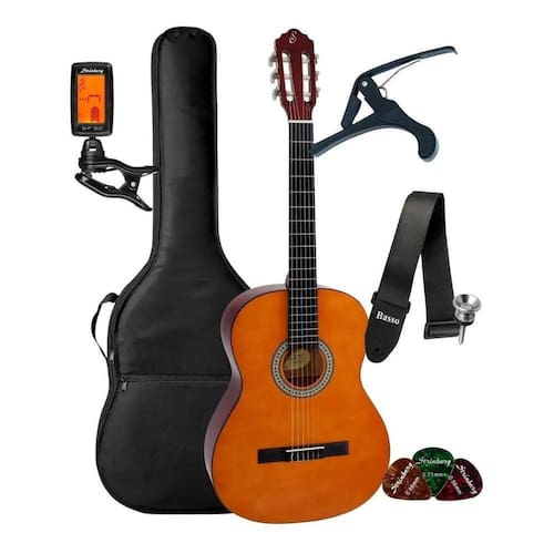Suporte ao aprendizado de violão. O Start chega para complementar a já conhecida linha estudante GCX15. Além disso, o violão também é excelente para quem já toca e quer um instrumento leve para deixar no carro, levar para cima e para baixo, animar as rodas de amigos, tocar suas músicas em casa, ou qualquer lugar que você vá. Tampo: BasswoodLateral e Fundo: BasswoodBraço: Okoume com tensor bi-direcionalEscala: Sabina maciçaComprimento da escala: 650 mm 25,6 Cavalete: Sabina maciçoTarraxas: Pino grosso niqueladas, 3+3Pestana: ABS na cor marfimLargura da pestana: 48 mm 1,9 Rastilho: ABS na cor marfimLargura do rastilho: 80 mm 3,15 Acabamento: Verniz brilhanteCordas: Náilon tensão pesada. Recomendamos para a troca utilizar as cordas Giannini Clássico GENWPA Pesada, Giannini Titanium GENWTA PesadaHeadstock: Letra S Holográfica, placa adicional em basswoodLargura da caixa: 378 x 292 mmAltura da caixa: 100 x 105 mmTamanho total: 100 cm 39,4 Acompanha: Chave de ajuste do tensor Itens Inclusos: Violão Giannini CapaCapotrasteAfinador CorreiaRoldana