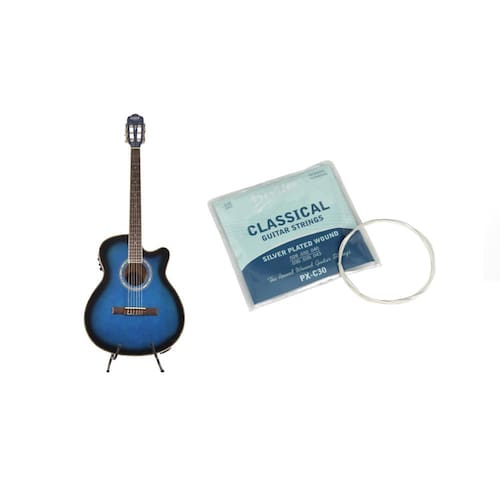 Violão land eletrico nylon azul lw-n-40e bl O violão elétrico lw-n-40e se destaca pelo equilíbrio sonoro e ótima construção, sendo um instrumento indicado a quem busca versatilidade. Este violão clássico possui encordoamento em nylon, sendo uma excelente opção para músicos que valorizam tocabilidade. Seu braço é confortável, permitindo um bom encaixe da mão, detalhe importante para facilitar a execução das pestanas e acordes. Adquira o violão elétrico land lw-n-40e e tenha um instrumento musical que irá atendê-lo nas mais diversas ocasiões O land lw-n-40e foi desenvolvido num modelo anatômico e moderno, também oferece uma captação com maior qualidade. Outro diferencial que favorece todos os níveis de violonistas é o afinador digital embutido, que facilita muito, tanto de iniciantes quanto dos veteranos, da arte de tocar violão. O pré equalizador land eq-klt-17a é uma ótima opção para quem quer qualidade de som e versatilidade. O teq-8 é um pré equalizador ativo para violão. Acompanha 4 bandas de equalização bass/ middle/ treble , ajuste de volume, indicador de bateria altamente intuitivo e afinador. Especificações técnicas equalizador - pré amplificador, equalizador - afinador cromático digital - 3 bandas - grave, médio e agudo - phase, anula efeito de microfonia do violão - painel de lcd - battery box com jack p10 - bateria 9v inclusa. Marca - land Modelo - lw-n-40e Linha - water series Categoria - profissional Estilo - cowboy Tamanho - 40 polegadas Tampo - linden Fundo - linden Escala - richlite finberboard Braço - mahogany Acabamento - verniz brilhante Cor - azul Cordas - nylon Equalizador - eq-klt-17ª Controles - volume, médio, grave e agudo Cavalete - black wood Cutway - sim Trastes - 22 Marcaçao - bolinhas brancas Comprimento - 111,0 cm Largura - 52,0 cm Espessura - 19,0 cm Braço - 52,2mm Peso - 4,00 kg Encordoamento Encordoamento para violão nylon land pa-c30 As cordas land da linha classic proporcionam o timbre e brilho que você procura para o seu violão. São perfeitas para músicos que preferem timbre macio e brilhante, com toque mais sensível. Acabamento com bolinha + revestimento cobre prateado As cordas land trazem a mesma qualidade presente em seus tradicionais instrumentos. Encordoamento violão nylon land classic com bolinha Alma: nylon Revestimento: cobre prateado Comprimento de escala: 648 mm / 25 1/2