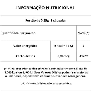 Ingredientes: Amido modificado e colecalciferol. Cápsula: gelatina vegetal e água.