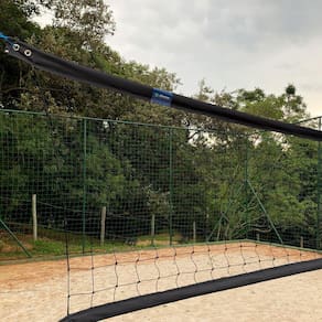 Kit Vôlei de Praia Preta - Rede Oficial 2 Faixas + Fita de Marcação.Contém:- 1 Rede de Vôlei de Praia Oficial 2 Faixas;- 1 Fita de Marcação para Vôlei de Praia com Fixadores.Especificações Rede de Vôlei de Praia:- Dimensões: 8,50m de comprimento por 1,00m de altura;- Faixas: 2 faixas de poliéster com cordas e ilhós de latão;- Fio: 2mm de polietileno, 100% virgem, com tratamento Anti-UV contra as ações do tempo ;- Malha: 10x10cm;- Cor da faixa: Preta.Especificações Fita de Marcação para Vôlei de Praia:- Tamanho da quadra: 8x16m;- Material: Polipropileno CBR ;- Contém: 6 fitas e 6 fixadores de ferro galvanizado;- Cor: Preta.Garantia:Contra defeitos de fabricação, não cobrindo danos causados na/após sua instalação, como cortes, queimaduras, produtos químicos ou qualquer outro produto que altere a resistência do produto.