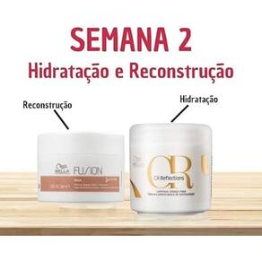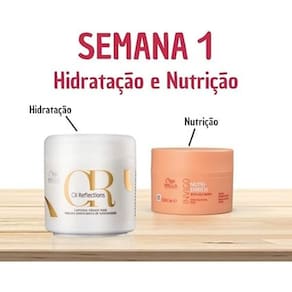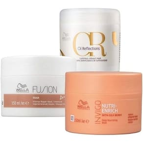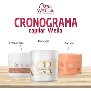 CONTÊM: 01 - Máscara Capilar Fusion 150ml Wella 01 - Máscara Capilar Oil Reflections 150ml Wella 01 - Máscara Capilar Invigo Nutri-Enrich 150ml Wella A Máscara Capilar Fusion da Wella ajuda a recuperar os fios e proteger contra a quebra. Com ingredientes intensamente condicionantes e aminoácidos. A Máscara Capilar Oil Reflections restaura a estrutura capilar e garante brilho e maciez intensos. Máscara Capilar Invigo Nutri-Enrich trata cabelos secos, ressecados ou quimicamente tratados. Hidrata e nutre profundamente para restaurar a saúde dos fios e ainda garantir um toque sedoso e muito brilho. APLICAÇÃO: Reconstrução: Aplique a Máscara Capilar Fusion no cabelo úmido. Deixe agir por 5 minutos e enxágue abundantemente. Hidratação: Aplique a Máscara Capilar Oil Reflections nos fios e enluve. Deixe agir de 15 a 20 minutos e enxague. Nutrição: Aplique a Máscara Capilar Invigo Nutri-Enrich sobre o cabelo limpo e úmido. Distribua pelo comprimento e pontas dos fios e deixe agir por 5 minutos. Enxague. CRONOGRAMA CAPILAR: 1ª Semana: Máscara Oil Reflections (Hidratação) + Máscara Invigo Nutri-Enrich (Nutrição) 2ª Semana: Máscara Fusion (Reconstrução) + Máscara Oil Reflections (Hidratação) 3ª Semana: Máscara Oil Reflections (Hidratação) + Máscara Invigo Nutri-Enrich (Nutrição)