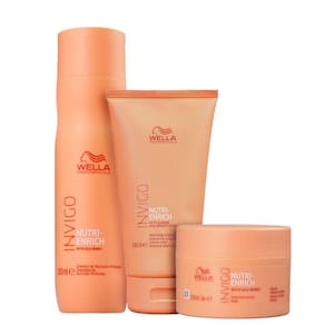Kit com shampoo, condicionador e máscara para cabelos secos, ressecados ou com química. Kit Wella Professionals Invigo Nutri-Enrich Express Trio traz uma fórmula de alta performance, que melhora a qualidade do fio ao nutrir e hidratar de forma rápida e eficaz.
