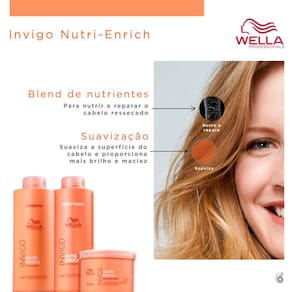 O Kit Wella Professionals Invigo Nutri-Enrich Salon Duo traz um blend de nutrientes multifuncionais que suavizam a superfície do cabelo para proporcionar muito mais brilho e maciez. Desfrute de fios limpos, hidratados, nutridos e desembaraçados.