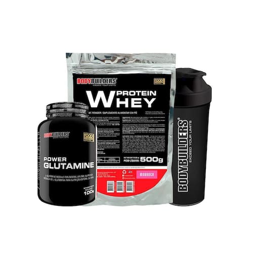 Kit Whey Protein 500g Morango + Power Glutamina 100g + Coqueteleira - BodyBuildersO kit Whey Protein MOR 500g + 1 POWER Glutamina 100g + 1 Coqueteleira - BodyBuilders é composto por produtos que são referência no mercado, além de oferecer um ótimo custo benefício. Whey Protein é a proteína extraída do soro do leite, utilizada para potencializar o desempenho atlético e aumentar a força. A Whey Protein é uma fonte de proteína que pode melhorar o conteúdo de nutrientes da dieta, além de gerar efeitos positivos no sistema imunológico. Com preparo rápido, fácil e prático, está disponível em três deliciosas opções de sabores: Chocolate, Baunilha e Morango. POWER Glutamine é um produto ainda mais concentrado. A Glutamina é indispensável na dieta de quem pratica treinos longos, intensos e regulares e sua suplementação é responsável pela construção de proteínas no corpo humano. Desta forma, a Glutamina ajuda a melhorar o seu desempenho e performance durante os exercícios do dia a dia, além de auxiliar na recuperação e manutenção dos músculos. Imagem meramente ilustrativa Evite automedicação, consulte sempre um especialista. O rótulo e a embalagem podem variar de acordo com o lote.