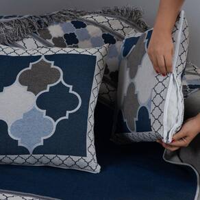 Kit Xale Com Almofadas Grécia Jacquard Dupla Face 5 Peças Variação: Azul