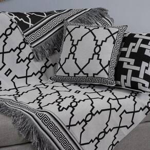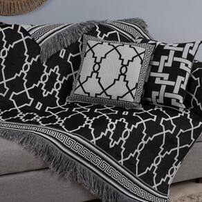 Kit 5 Peças Xale para Sofá e Almofadas Grécia Jacquard 1,35x1,35m com Franja