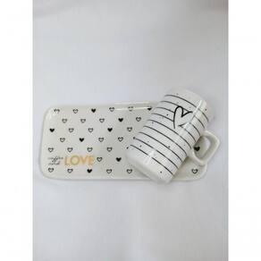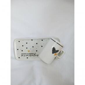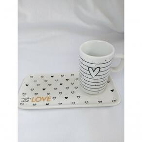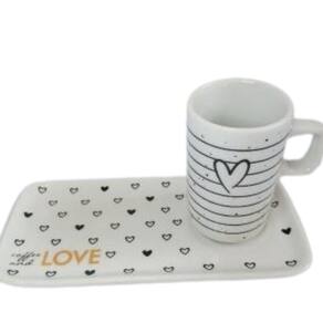 Com uma xícara de capacidade de 80ml e medidas de 5cm de diâmetro e 9cm de altura, sua alça quadrada proporciona mais conforto ao servir. O pires retangular, com 18cm x 9cm, complementa a elegância do conjunto.