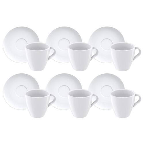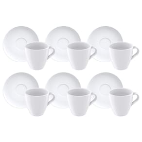 Fabricado em Porcelana. Coleção: Paola. Porosidade próxima de zero, evitando a proliferação de fungos e bactérias. Volume da xícara: 200 ml. Composto por: 12 peças (6 xícaras e 6 pires). Serviço: 6 pessoas.