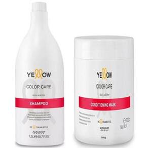 Este kit contém:01 shampoo yellow color care 1,5 litros01 máscara yellow color care 1kgA linhaYellow color careO aliado perfeito para os cabelos pintados, no salão e em casa. Exalta e preserva no tempo a intensidade e o brilho de cada cor.Os resultados Depois de 1 mês, cor como recém aplicada85% da intensidadeLuminosidade ampliada+41% depois de um só tratamentoShampoo yellow color care - shampoo para cabelos coloridos 1500mlShampoo protetor da corLimpa delicadamente preservando dia após dia a intensidade e a luminosidade dos reflexos.Modo de usoAplicar na pele e nos cabelos molhados, massagear e enxaguar.Máscara yellow color care - para cabelos coloridos 1000mlMáscara protetora de corRegenera e nutre em profundidade os cabelos coloridos. Ajuda a prolongar a intensidade dos reflexos e a manter os cabelos luminosos e macios ao tato.Modo de usoAplicar nos cabelos molhados, esperar 5 minutos.Enxaguar abundantemente.