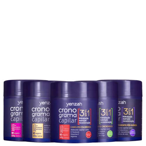 O Kit Yenzah Cronograma Capilar 3 em 1 Máscaras traz uma combinação especial de produtos para uma rotina de cuidados eficaz para fios que passaram por processos químicos ou estão com as cutículas sensibilizadas.