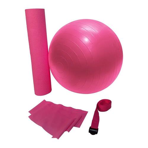 Kit Treino Especial 500101A WCT Fitness traz para você um excelente produto, o KIT TREINO 500101Nós fizemos esse projeto especialmente para você usar em diversos lugares, como em casa, na academia ou até mesmo em jardins ou lugares abertos ao ar livre.Esse kit irá ajudar a desenvolver muitos exercícios de alongamento, postura, fortalecimento e perda de peso.O kit 500101 possui:- 1 Faixa Elástica tipo Thera Band- 1 Tapete de 173cm X 61cm- 1 Bola Suíça de 40cm - 1 Corda de Apoio para exercíciosIndicamos para pessoas de todas as idades, desde crianças até idosos, pois seus acessórios ajudam a diversificar um treinamento de baixo impacto, cor rosa.