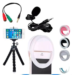 Kit Youtuber Microfone De Lapela para Smartphone + Flash Led Anel Recarregável + Mini Tripé +Cabo Extensor +Adaptador P3 Tripé flexível Tripé altamente flexível. Devido sua flexibilidade e sua composição rígida o mesmo permite que você pendure o tripé em diversas superfícies para selfies ou gravações. Especificações - Mede aproximadamente 19 CM - Cores Disponíveis: Preto/azul/vermelho Microfone de lapela Microfone ideal para youtubers, Vlogs, palestrantes, filmadoras, skype, muito utilizado por radialistas e estudantes. Por ser Stereo, possui boa qualidade, tem uma ótima captação de áudio, mesmo estando longe do rosto. Especificações - Comprimento do cabo aprox 1,05 - Compatibilidade: smartphones/PS4/Xbox One/ e outros dispositivos que possuem saída P2 com áudio e microfone conjugados na mesma porta Ring Light Ring Light especie de anel de flash portátil. Auxilia em gravações, fotos, proporcionando uma iluminação perfeita e compactada. Sua luz continua tem duração de até 45 minutos em plena potência. Especificações - 3 níveis de luz de LED Baixo, Médio e Forte . - Não necessita de pilhas, carrega através de cabo usb. - Produto nas cores branca, preta e rosa. consultar disponibilidade ou enviaremos de forma aleatória Cabo Extensor Extensão Fone P2 Macho X Fêmea com 1,5 Metros de Cumprimento - Microfone de Lapela para Smartphone Flash Led Anel Recarregável Mini Tripé Cabo Extensor Adaptador P3 Homologação Anatel: 025391003883