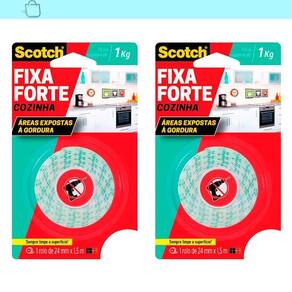 DESCRIÇÃO Nosso Kit2 Fita Dupla Face Scotch Fixa Forte Cozinha 24X1,5 3m 1kg é perfeito para fixar todos aqueles objetos decorativos. A fita pode ser usada em utensílios, acessórios de cozinha e nas paredes. Sua resistência à graxa ambiental a torna ideal para uso em cozinhas, onde quer que haja exposição à graxa. A película impermeável garante que nenhum líquido penetre na fita e a torna impermeável, mesmo em áreas expostas à graxa.