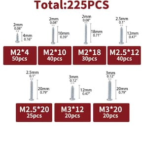 Codigo do produto: gn2581 Garanta qualidade e versatilidade em seus projetos com este kit com 225 parafusos philips autobrocantes em aço inoxidável, com variados tamanhos m2, m2.5 e m3. Ideal para , montagens, eletrônica, impressoras 3d e muito mais. Conteúdo do kit: M2 x 4 mm - 50 unidades M2 x 10 mm - 40 unidades M2 x 18 mm - 30 unidades M2.5 x 12 mm - 40 unidades M2.5 x 20 mm - 25 unidades M3 x 12 mm - 20 unidades M3 x 20 mm - 20 unidades Total: 225 peças Aplicações: Projetos de eletrônica e robótica Impressoras 3d e cnc Montagens e reparos em geral Diy, modelismo e hobby Especificações: Tipo: parafusos philips autobrocantes Material: aço inoxidável resistente à corrosão Cabeça: philips cruzada Tamanhos variados: m2, m2.5, m3 Vantagens: Resistentes e duráveis Não enferrujam Acabamento de alta qualidade Praticidade na instalação