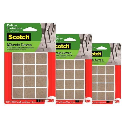 Marca: Scotch Quantidade: 12 Unidades Largura: 25 mm Comprimento: 25 mm Espessura: 3 mm Cor: Marrom Composição: Feltro e Adesivo Aplicações Sugeridas: Mesas e Cadeiras Ambiente: Interno Validade: 4 Anos Ncm: 6307.90.90