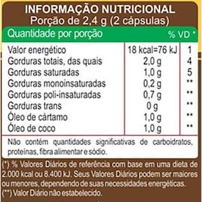 Kit 3 óleo de cartamo e coco cartacoco 1200mg unilife 120 cápsulas O cartacoco é um produto formulado para auxiliar dietas de redução de peso, pois combina o óleo de cártamo com o óleo de coco, dois ingredientes conhecidos por seus poderes na locomoção das gorduras, principalmente a abdominal. É um suplemento rico em ácidos graxos ômega 3 e ômega 6 com fator antioxidante. Além de ácido láurico que auxilia no e tem propriedade termogênica. O óleo de cártamo é rico em ácido oleico ômega 9 e linoleico ômega 6 gorduras boas que o corpo não produz, e que devem ser consumidas por meio da alimentação. Esses ômegas desempenham diversas funções e benefícios do organismo: ação no controle do total, redução de processos inflamatórios, proteção cardiovascular, entre outros. Já o óleo de coco é um lipídio, que proporciona aumento do metabolismo e . Auxilia nas dietas de redução de peso. O óleo de cártamo é rico em ômega 9 e 6, gorduras boas que o corpo não produz e que portanto devem ser consumidas por meio da alimentação. Esses ômegas desempenham diversas funções em benefício do organismo, entre elas podem ser citadas a ação no controle do total, redução de processos inflamatórios, proteção cardiovascular, entre outros. Marca: Não Informado