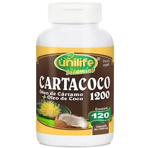 Kit 3 óleo de cartamo e coco cartacoco 1200mg unilife 120 cápsulas O cartacoco é um produto formulado para auxiliar dietas de redução de peso, pois combina o óleo de cártamo com o óleo de coco, dois ingredientes conhecidos por seus poderes na locomoção das gorduras, principalmente a abdominal. É um suplemento rico em ácidos graxos ômega 3 e ômega 6 com fator antioxidante. Além de ácido láurico que auxilia no e tem propriedade termogênica. O óleo de cártamo é rico em ácido oleico ômega 9 e linoleico ômega 6 gorduras boas que o corpo não produz, e que devem ser consumidas por meio da alimentação. Esses ômegas desempenham diversas funções e benefícios do organismo: ação no controle do total, redução de processos inflamatórios, proteção cardiovascular, entre outros. Já o óleo de coco é um lipídio, que proporciona aumento do metabolismo e . Auxilia nas dietas de redução de peso. O óleo de cártamo é rico em ômega 9 e 6, gorduras boas que o corpo não produz e que portanto devem ser consumidas por meio da alimentação. Esses ômegas desempenham diversas funções em benefício do organismo, entre elas podem ser citadas a ação no controle do total, redução de processos inflamatórios, proteção cardiovascular, entre outros. Marca: Não Informado Ean: 7908609504635