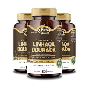Kit 3 óleo de semente de linhaça dourada 1000mg unilife 60 cápsulas Óleo de linhaça dourada unilife 60 cápsulas Cada cápsula contém 1.000mg de óleo de linhaça dourada É a maior fonte de ômega 3 existente na natureza. Contém ômega 6 e ômega 9. São ácidos graxos poli-insaturados essenciais que mantém as células em condições de integridade. Contém também proteínas, minerais, vitaminas e lignina substância comparada ao hormônio feminino estrogênio . Benefícios do uso do óleo de linhaça dourada em cápsulas Fonte de ácidos graxos essenciais Previne os sintomas da menopausa Ajuda a regular o ciclo menstrual Previne o envelhecimento precoce Melhora o sistema imunológico e previne doenças cardiovasculares Sugestão de uso Sugere-se a ingestão de 1 cápsula, duas vezes ao dia, após as refeições. Ingerir com líquido. Ingredientes Óleo de linhaça dourada. Cápsula: gelatina bovina, umectante glicerina e água. Não contém glúten. Livre de lactose. Marca: Não Informado